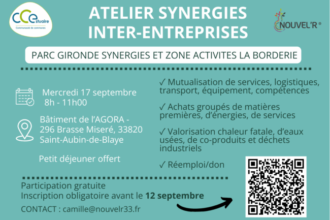Les ateliers de synergies inter‑entreprises permettent de réunir des entreprises d’un même territoire ou d’un même secteur d’activité pour identifier des opportunités concrètes de mutualisation, valorisation ou partage de ressources.