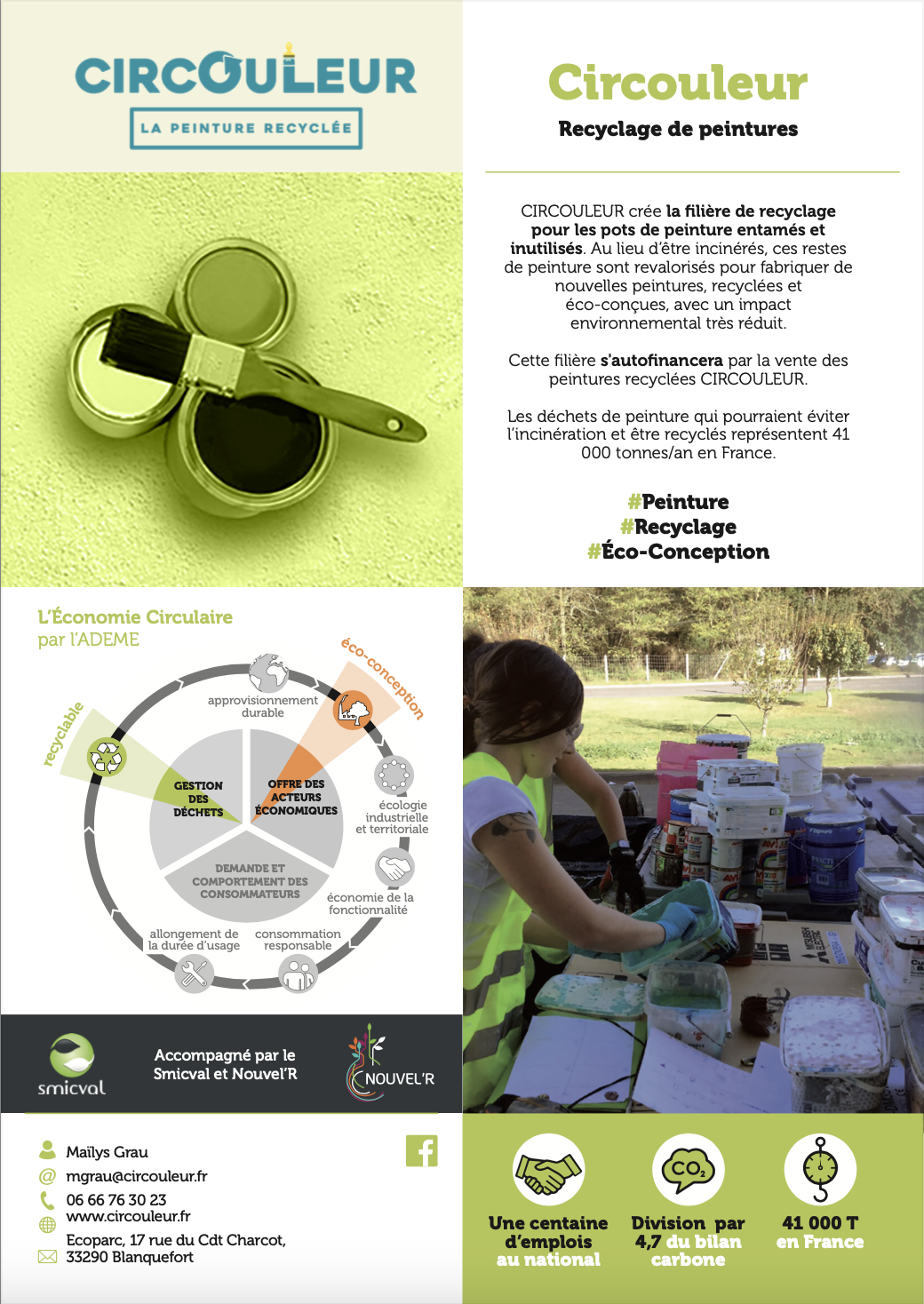 Cette filière s’autofinancera par la vente des peintures recyclées CIRCOULEUR.
