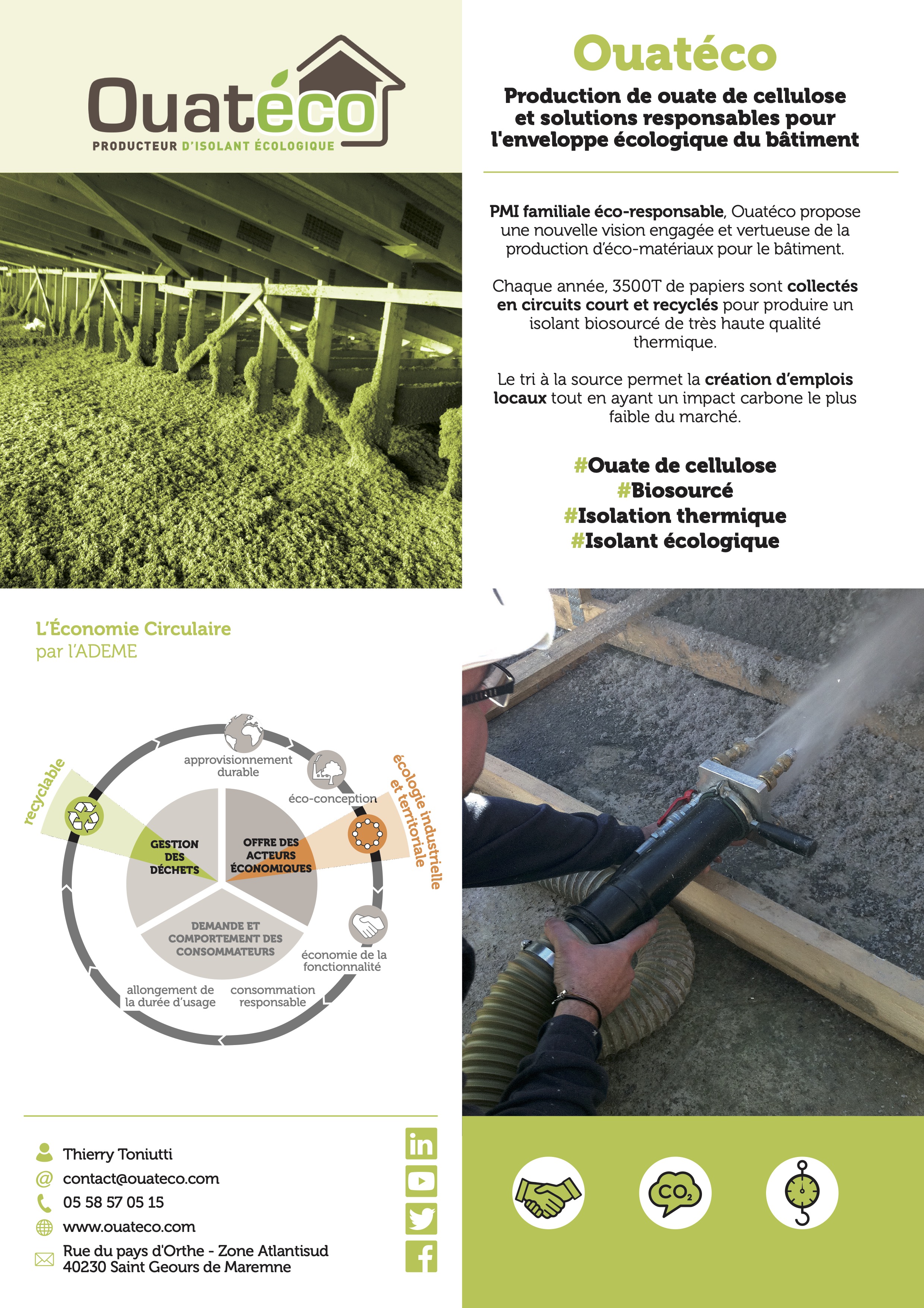 PMI familiale éco-responsable, Ouatéco propose une nouvelle vision engagée et vertueuse de la production d’éco-matériaux pour le bâtiment.